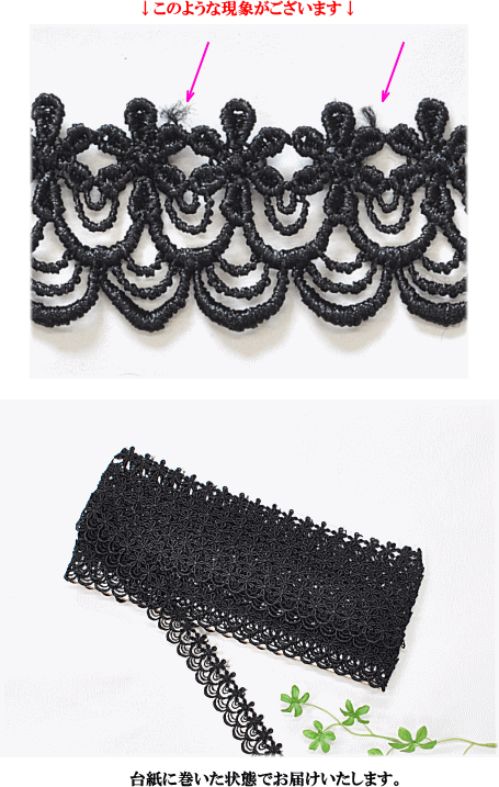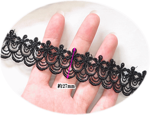 ポリエステル ケミカルレース 約27mm幅 7.5Y(約6.5m) 《 ブラック 黒 レース モチーフ 花 洋服 バッグ インテリア カルトナージュ 飾り アクセント クラフト ハンドメイド 手芸 手作り 》